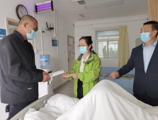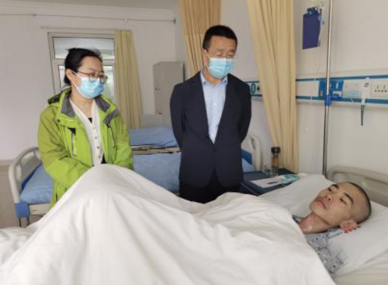 2023年4月14日上午10时许,系党总支书记高四海带领学生科长刘莹,孙致伟辅导员武继英一同前往延安市第二人民医院看望孙致伟同学,并将师生的捐款交到家长手中。