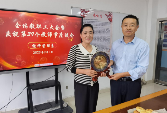 会上,王龙主任代表经济管理系向爱岗敬业、潜心育人的全体教职工致以崇高的敬意和节日的问候,向受到学院表彰的4名先进个人表示热烈的祝贺!向各位老师表示了真诚的敬意和美好的祝福!