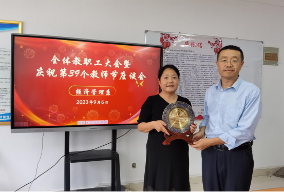 又是一年佳节至,金秋九月颂师恩。在第39个教师节即将到来之际,为表彰全体辛勤耕耘、无私奉献的教职员工,加强教师队伍建设,激励教师树立职业理想、凝心聚力、奋发有为,营造和谐向上、尊师重教的良好氛围。9月6日下午,经济管理系全体教职工齐聚一堂,在11号教学楼301会议室举行了第39个教师节庆祝大会。本次大会由系总支书记高四海主持。