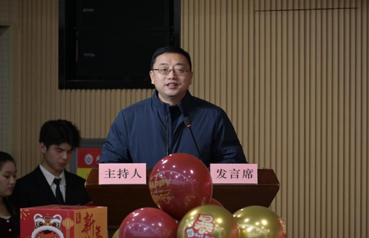 晚会伊始,系党总支书记杨晓东老师发表了热情洋溢的致辞。他肯定了经济管理系全体师生在过去的一年里努力及取得的成果,称赞晚会组织者能在紧张学习之余,用心准备出这样一场集乐器演奏、歌曲演唱、诗歌朗诵、舞蹈表演以及非遗文化展示等精彩纷呈的文化盛宴,不易且难得,这既是辅导员老师教育成果、班级文化的集中展示,也是经济管理系师生对美好未来的自信与祝福。