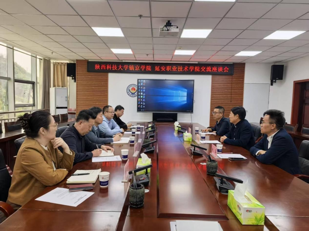 2026年4月16日下午,陕西科技大学镐京学院执行校长黄国泉一行3人来我院开展调研交流,交流座谈会在办公楼502会议室召开。