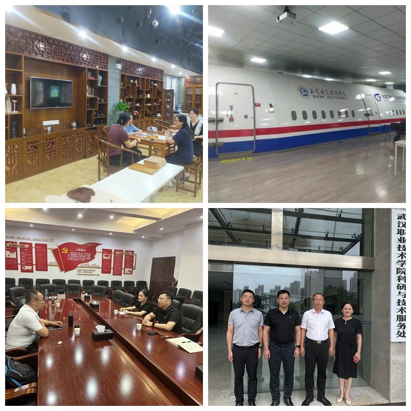 7月1日下午,王龙到武汉职业技术学院旅游与航空学院考察专业建设与实训室建设,并与旅游与航空服务学院副院长蒋永业、旅游与航空服务学院党委副书记陈玲玲座谈交流