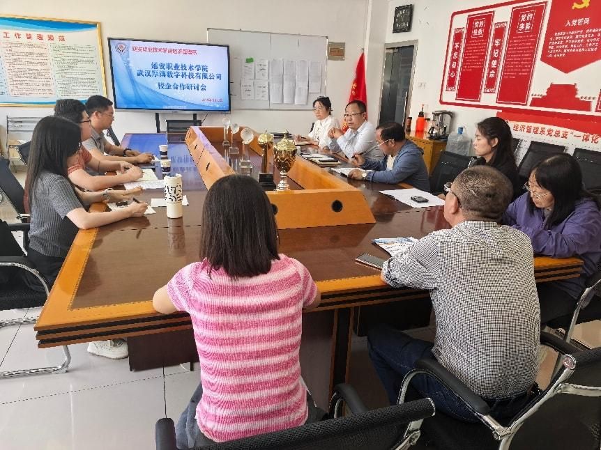 5月16日,经济管理系职教活动周迎来重磅环节——合作企业武汉厚溥数字科技有限公司专家团队一行三人走进校园,与系部教学管理人员、教研室主任在11-A-301室齐聚一堂,围绕大数据与财务管理、电子商务两大专业人才培养方案展开深度研讨,为精准对接产业需求、培育高素质技能型人才锚定方向。