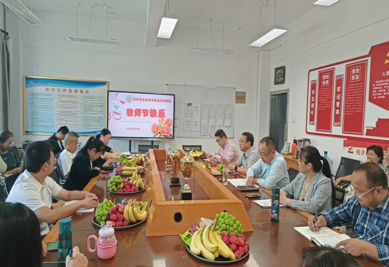 9月10日下午,经济管理系在11号楼301会议室召开了庆祝第41个教师节暨教师暑期国培/下企业实践锻炼学习分享会,会议由系主任王龙主持,系部全体教职工、合作企业武汉厚溥数字科技有限公司代表共43人参加。