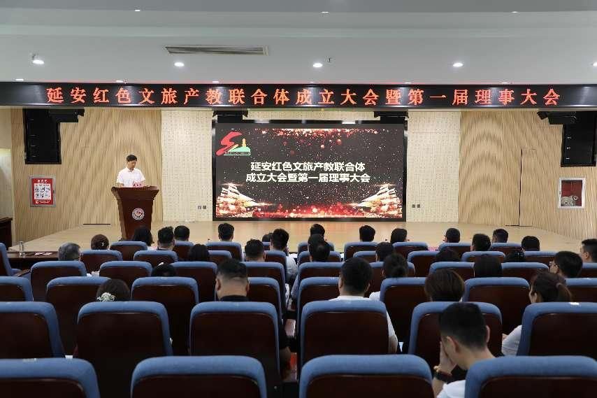 6月27日上午,延安红色文旅产教联合体成立大会暨第一届理事大会在延安职业技术学院举行。延安职业技术学院党委书记冯奇海致欢迎辞。延安市文化和旅游局副局长尚鹏浩陕旅集团延安公司副总经理张小炜延安文化发展(集团)有限公司党委书记、董事长杨泽分别代表指导单位与发起单位致词。延安革命纪念地管理局党委副书记吕向东、延安职业技术学院党委副书记党云萍、延安市人民政府教育督导室副县级督学刘冰延安市社会科学联合会副主席王炜、延安旅游(集团)有限公司副总经理薛艳红出席大会。来全市自政行校企研的60余名代表,学院党委班子部分成员,学院相关处系、教职工和学生代表共300余人参加大会。大会由延安职业技术学院党委委员、副院长杜善保教授主持。