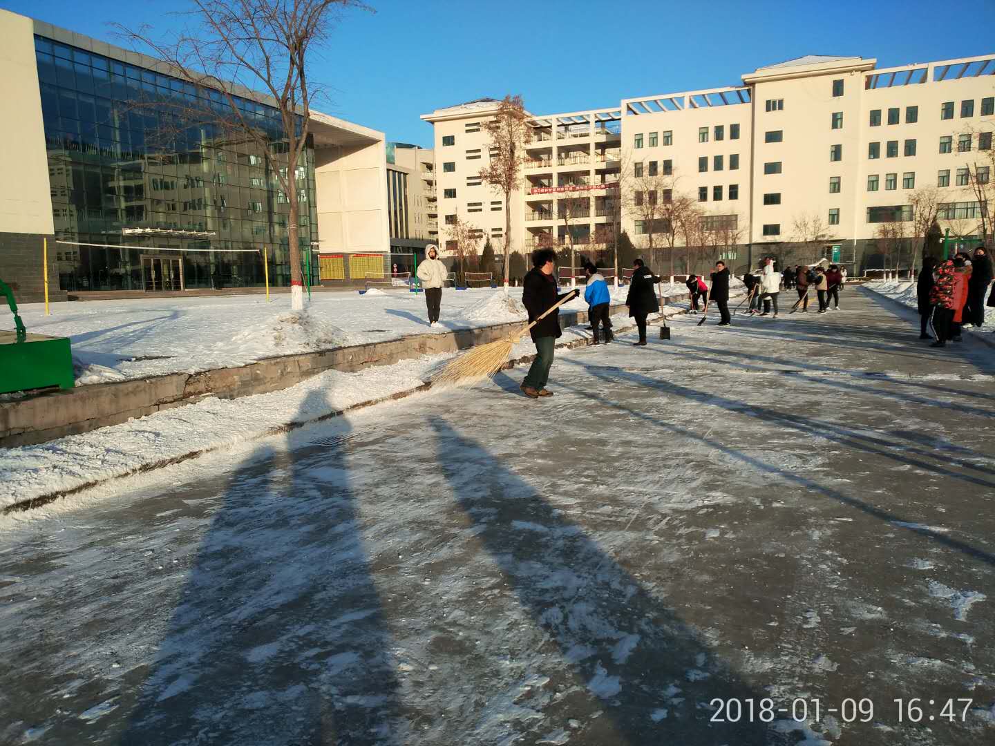 为了保证师生出行安全,1月8日下午4:00,经济管理系组织全体管理干部带领全体学生在校园内进行了义务铲雪。在系管理干部带领下,分3队分别对往后大门主干道,操场主干道,体育馆门前,实训工厂门前道路积雪进行了清理。同学们拿起扫帚、铁锹、铲雪板,扫的扫、铲的铲,虽然路面冰比较多,但大家都干得热火朝天,经过两个多小时的共同努力,路面上的积雪已被清扫干净,保障了同学的出行安全。这次活动不仅方便了师生的通行,也加强了学生的爱校意识,主人翁意识、奉献精神。