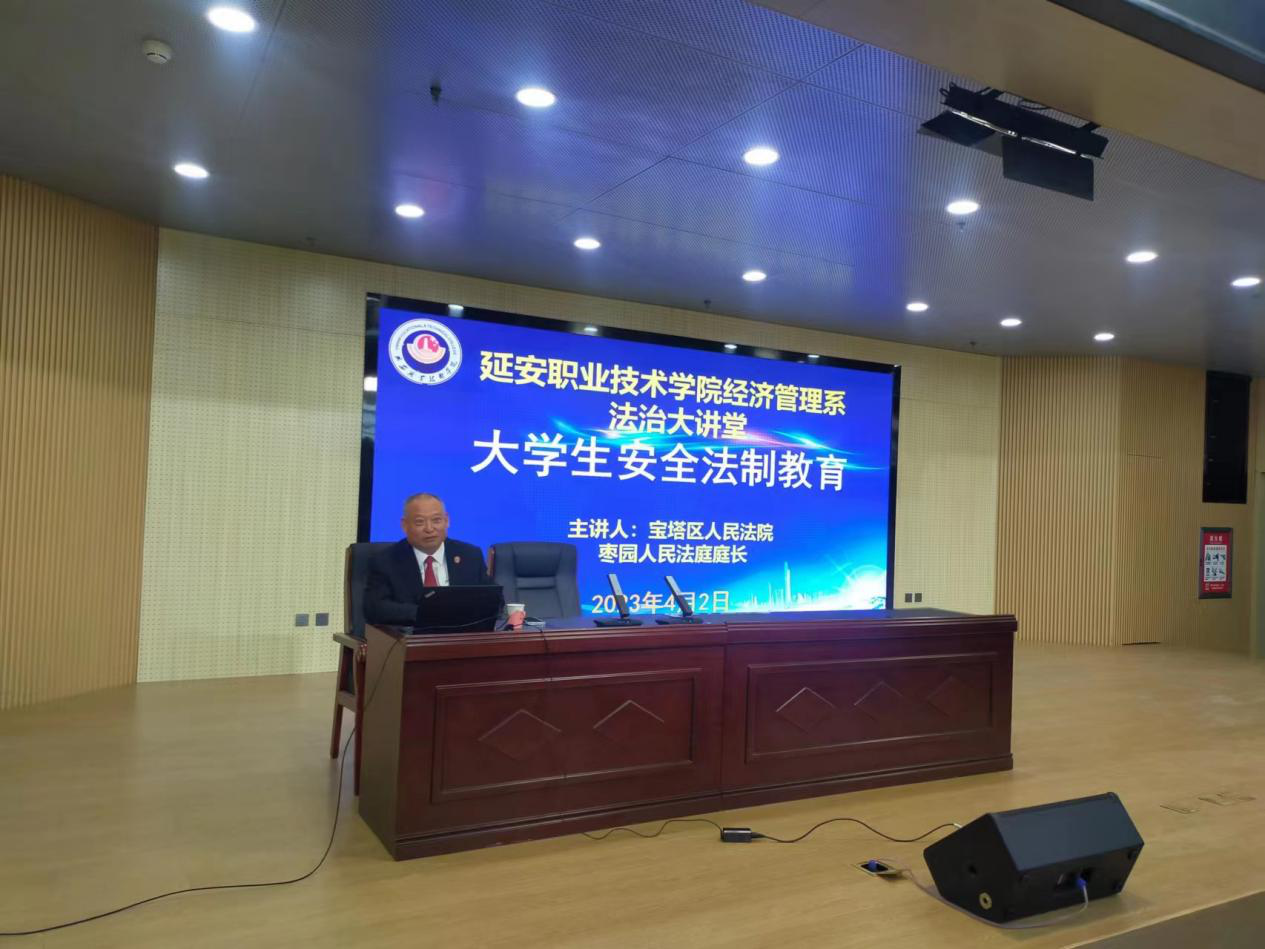 为切实提高师生法治意识,进一步加强对学生的法制教育,丰富学生的法律知识,提高学生的法律意识,增强学生自我保护能力,创建平安、和谐校园,让全体同学能够自觉遵纪守法,学会利用法律武器进行自我保护。42日晚上,延安职业技术学院经济管理系邀请宝塔区人民法院枣园法庭厅长张虎面向全体师生开展了法制教育讲座。讲座由经济管理系主任王龙主持,包括系党总支书记高四海在内的200余名师生参加了讲座。