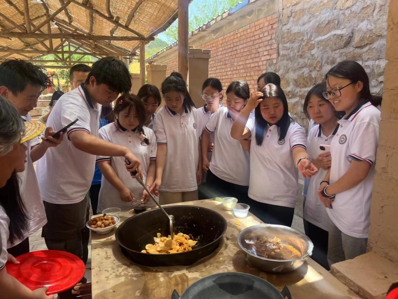 经过一番努力后,大家又齐心协力做起了大锅饭。两队成员紧密合作,分工明确,捡柴、生火、烹饪,忙得不亦乐乎,每一个步骤都凝聚着同学们的协作与付出。当香喷喷的饭菜出锅时,大家脸上都洋溢着满足的笑容,大家共享着劳动的成果,欢声笑语回荡在空气中。