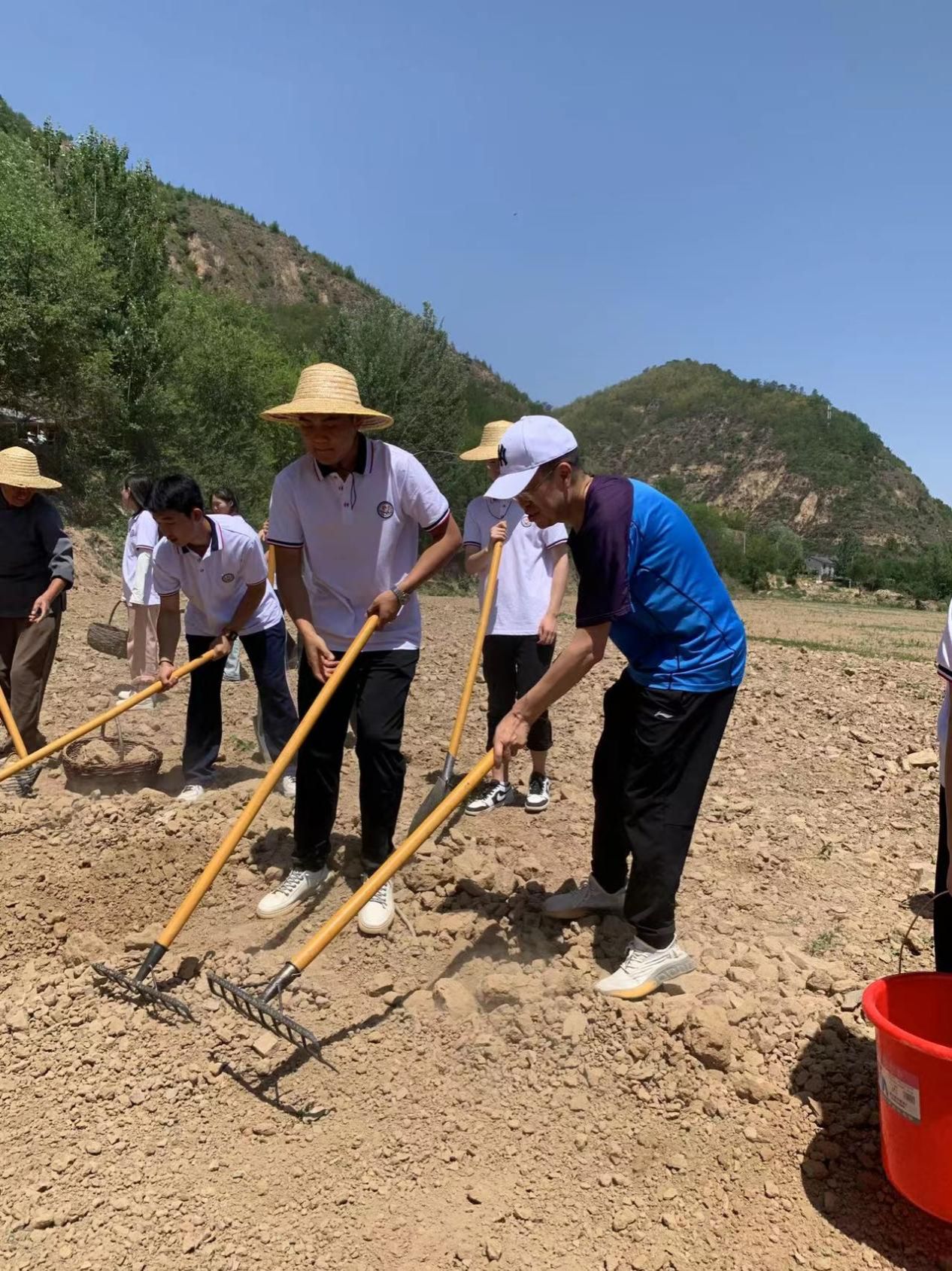 在劳动教育过程中,同学们还积极投身到学习种地的环节。大家手握铁锹、锄头等劳动工具,蹲在田间,弯下腰,认真地将种子播撒入土,向农民婆婆学习插苗、培土、浇水等种植技能,亲身感受土地的气息和农耕的辛劳,懂得了每一粒粮食的来之不易。