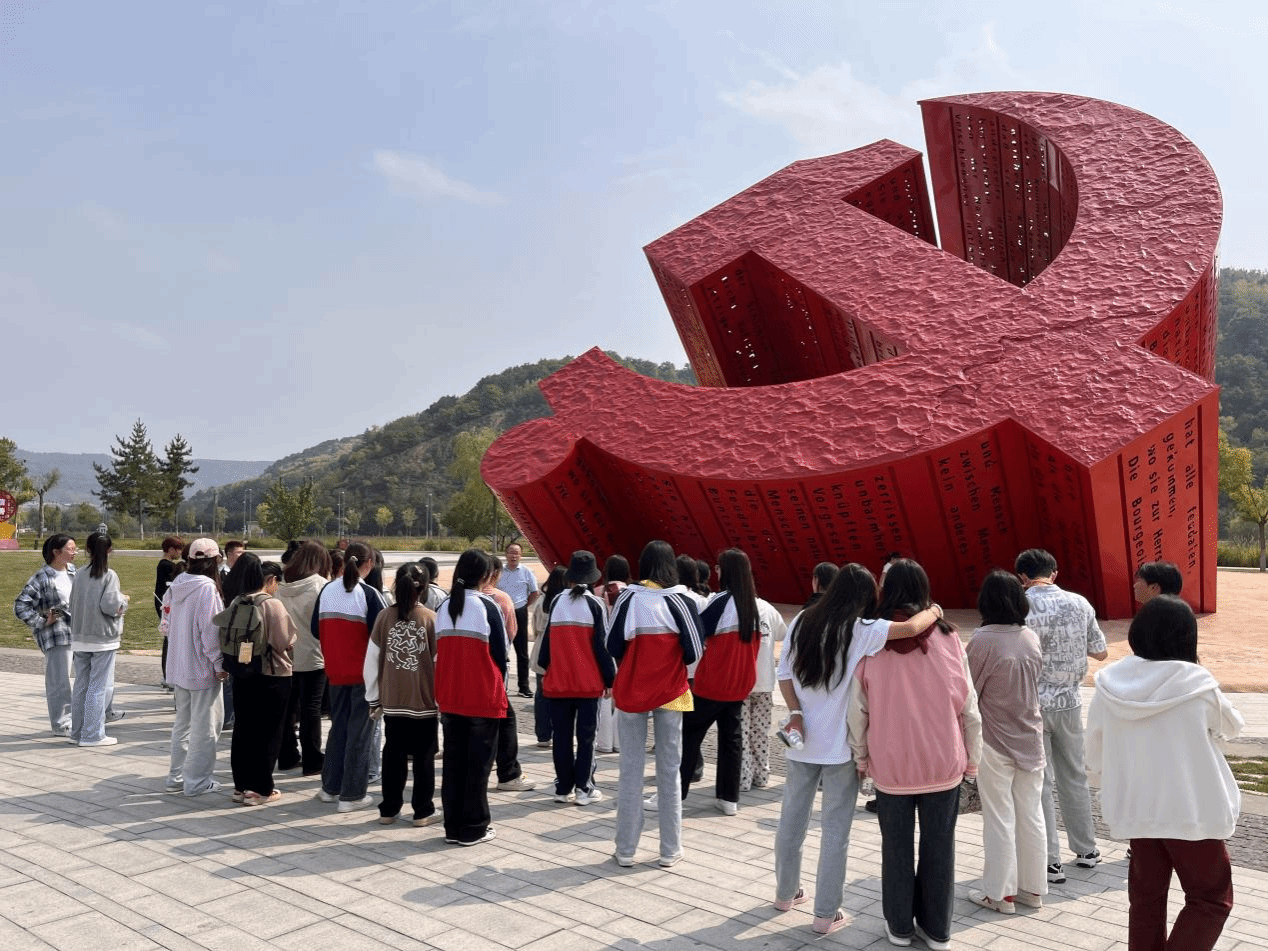 简单午饭后,同学们来到了南泥湾党徽广场,这里矗立着象征中国共产党的党徽雕塑,同学们在熠熠生辉的党徽雕塑前肃立,聆听了经济管理系主任王龙老师的微党课,加深了对南泥湾革命历史、南泥湾精神及延安精神的时代内涵的理解,传承了革命先辈的光荣传统和爱国主义精神。师生共同为祖国的华诞欢呼,为祖国的未来祝福!