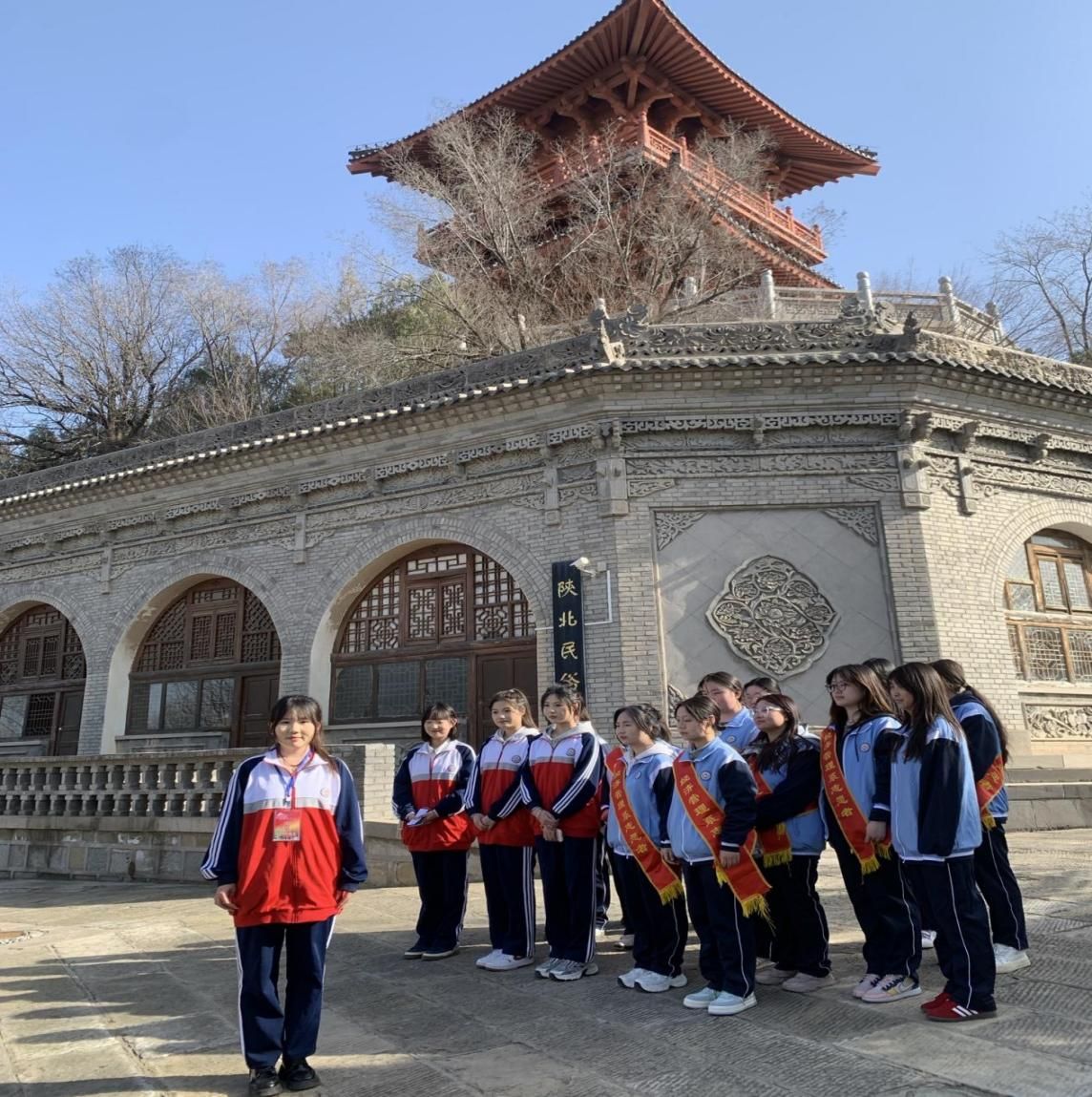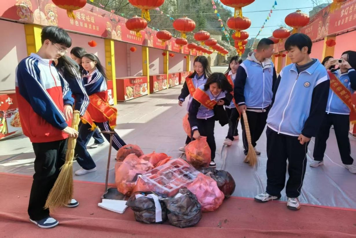 在“宝塔山下学雷锋 志愿精神耀延河”的横幅下集合后,同学们兵分两路,一队定点义务讲解,一队开展清理景区垃圾、擦亮栏杆等劳动。来自藏族、蒙古族、回族的5名学生代表也成为活动亮点之一,藏族学生求增索南用流利普通话表达着“我们不仅传播红色文化,更要架起民族团结的连心桥”的心意心愿。