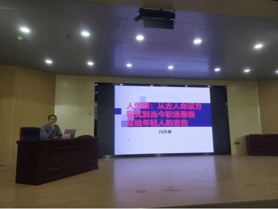 2024年5月6日晚,由学生处主办、经济管理系承办的2024年财经大讲堂第二期——职场专题讲座在学院2号阶梯教室举行。本次讲座邀请了历任新周刊、中国新闻周刊、粤商杂志等媒体总主笔、中国新闻周刊学术召集人、《财经郎眼》评论员、首席分析师、社会趋势观察家闫肖锋作题为“人生课:从古人命运方程式到当今职场晋级及给年轻人的忠告”的学术讲座。讲座由经济管理系主任王龙担任主持,来自学院10个系部的280余名师生聆听了本次讲座。