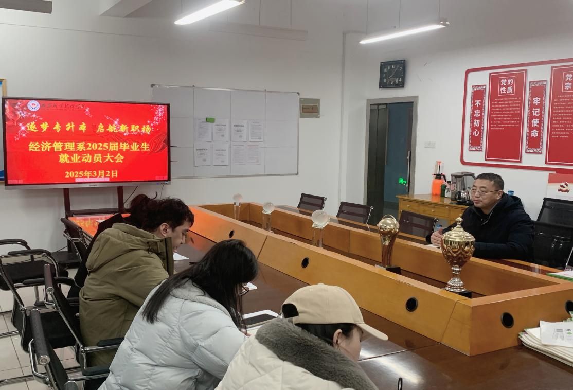 为积极应对当前就业形势,做好学生的就业工作,3月2日晚,经济管理系召开了2025届毕业班辅导员就业专题会,聚焦就业与专升本,凝聚工作合力、明确工作方向,充分发挥辅导员在学生择业、升学过程中的重要引领作用,为即将毕业的学生提供有力的指导和支持。学生科副科长张泽老师主持会议。