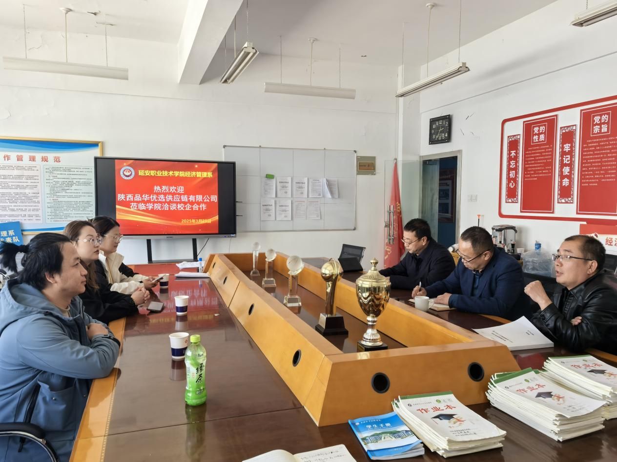 3月28日下午,陕西品华优选供应链有限公司副总经理王东洁一行3人来校洽谈校企合作项目。经济管理系相关领导、汇智尚能创客空间(电子商务教研室)教师代表参加洽谈。