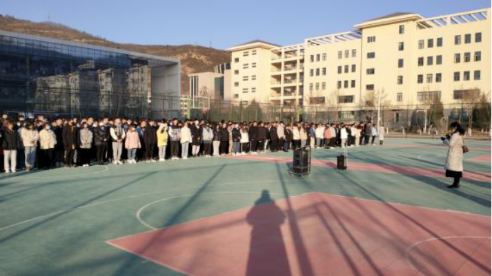 1月4日上午,经济管理系在篮球场举行2020-2021学年第一学期期末考试考前动员大会。经济管理系主任薛建强,经济管理系副主任杨晓东、教学科科长王素珍、学生科科长白鹏和全体师生参加会议,会议由系副主任杨晓东主持。