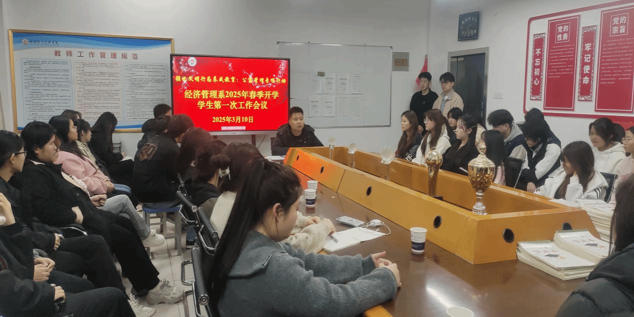 3月10日晚,经济管理系在系会议室召开学生管理专题工作会议。会议认真学习了学院“关于进一步加强学生日常文明行为规范养成教育”的通知精神,旨在为学生营造更加安全、整洁、文明的学习与生活环境。全系各班班长、团支部书记、学习委员、各宿舍舍长及部分学生会代表参会。