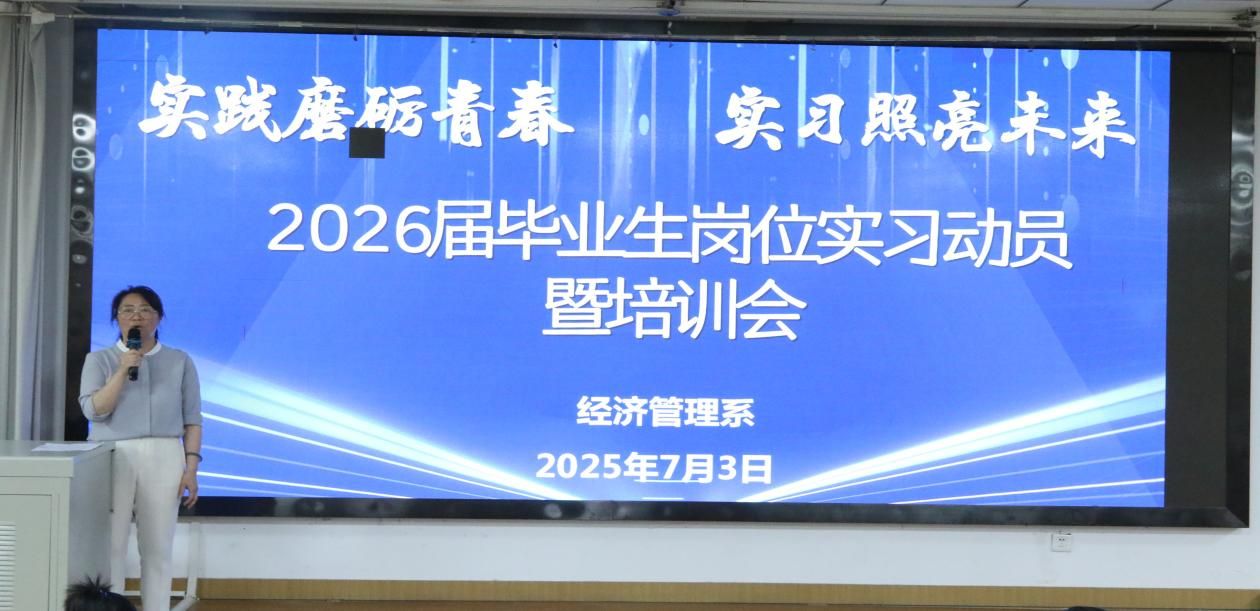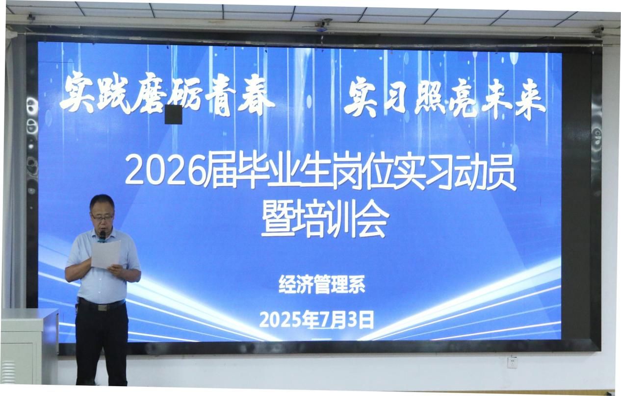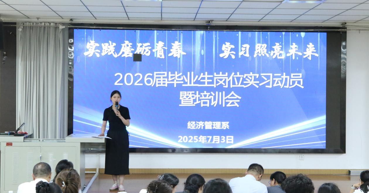 7月3日晚,经济管理系“2025年春季学期学风建设大会暨2026届岗位实习动员大会”在学院第一阶梯教室隆重举行。会议聚焦树榜样、严学风、启实习三大主题,系领导、教学与学生管理骨干及全体学生齐聚一堂,为新学期学风建设注入强心剂,为即将踏上实习征程的学子明确方向。