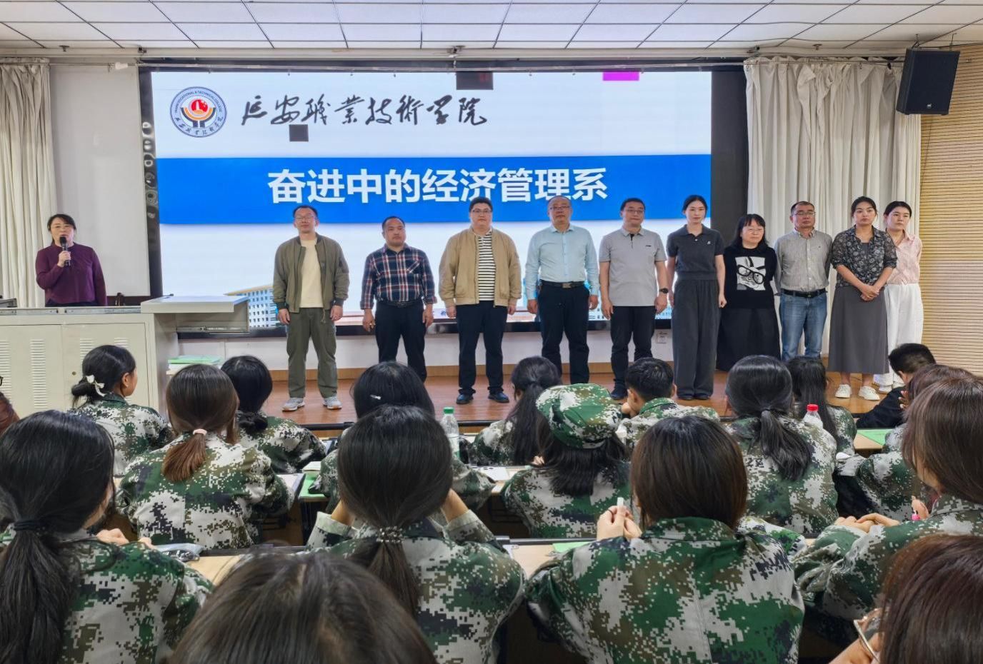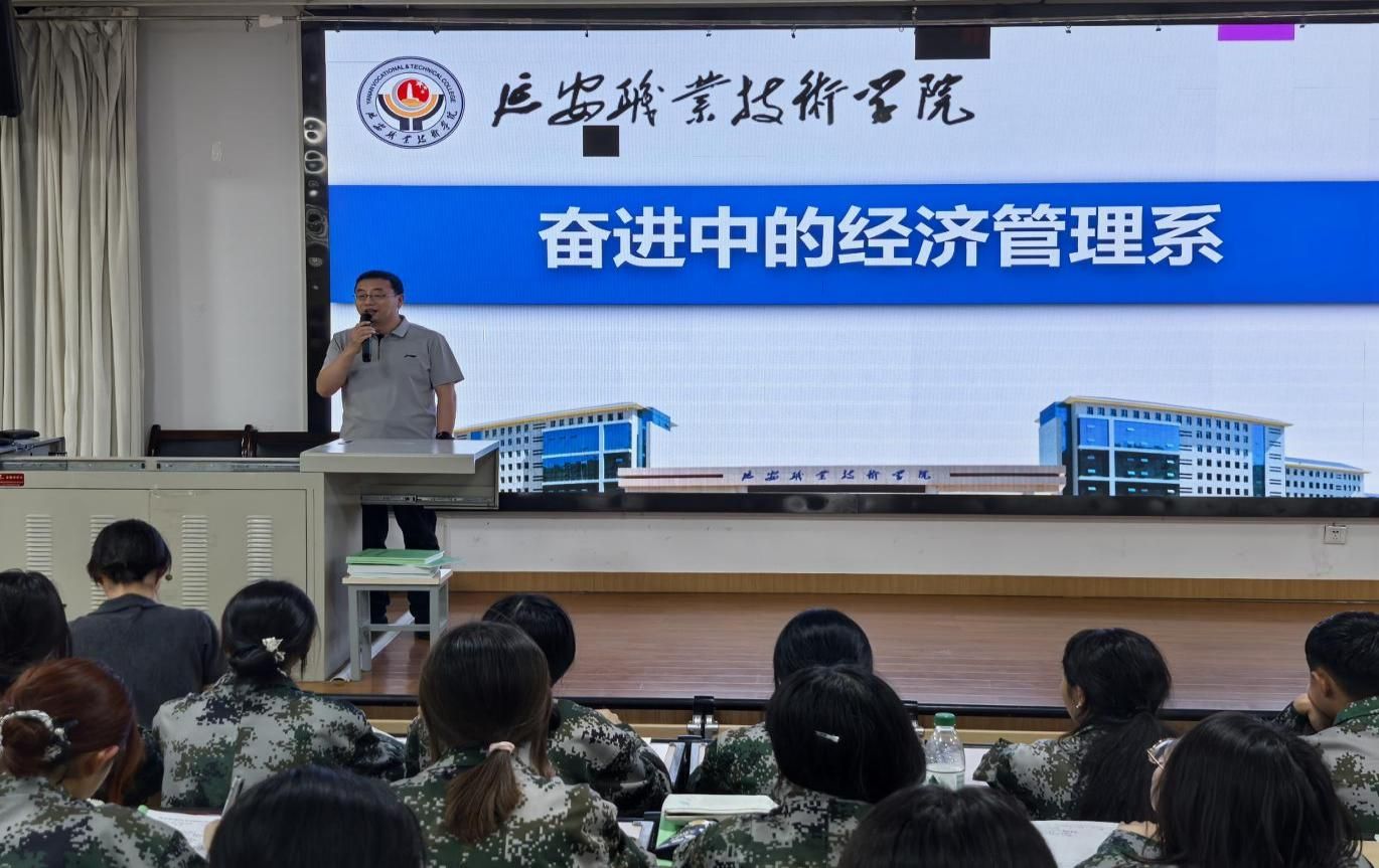 为帮助2025级新生快速了解院系发展概况,树立坚定理想信念,明确学习与成长方向,9月9日晚,经济管理系在第一阶梯教室举办了2025级新生校情介绍暨理想信念教育大会。系部管理团队、校企合作企业武汉厚溥数字科技有限公司团队、各教研室主任、新生辅导员及全体2025级新生共400余人参加了此次大会。