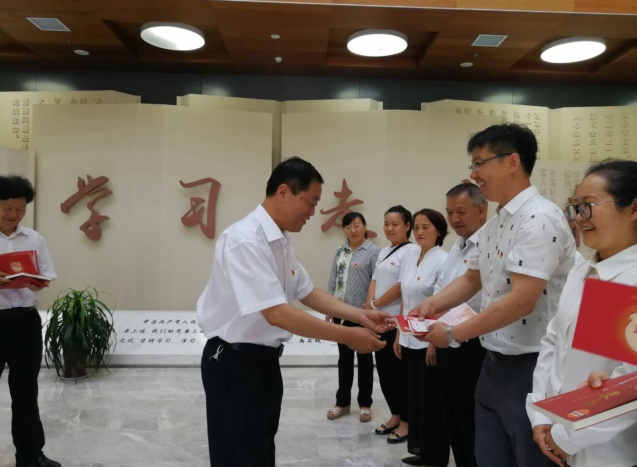 随后,王旭平和系领导为九位党员赠送了“政治生日”贺卡和党建读物《初心 使命》。小小礼物赋予了总支对大家的期望和重托,过“政治生日”的党员们在感受到党组织温暖同时,更多是对党沉甸甸的责任和担当。
